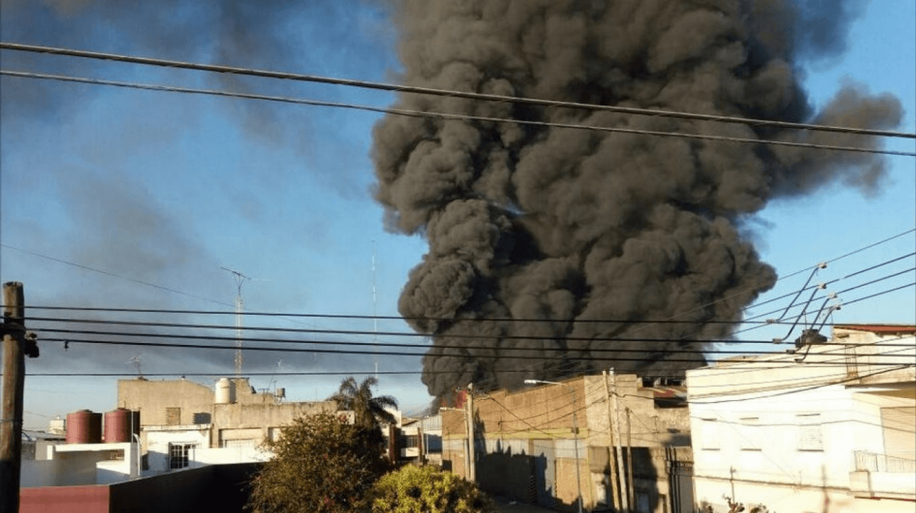 Una enorme columna de humo negro provocada por un incendio se levanta en el barrio de Martínez, en la localidad
