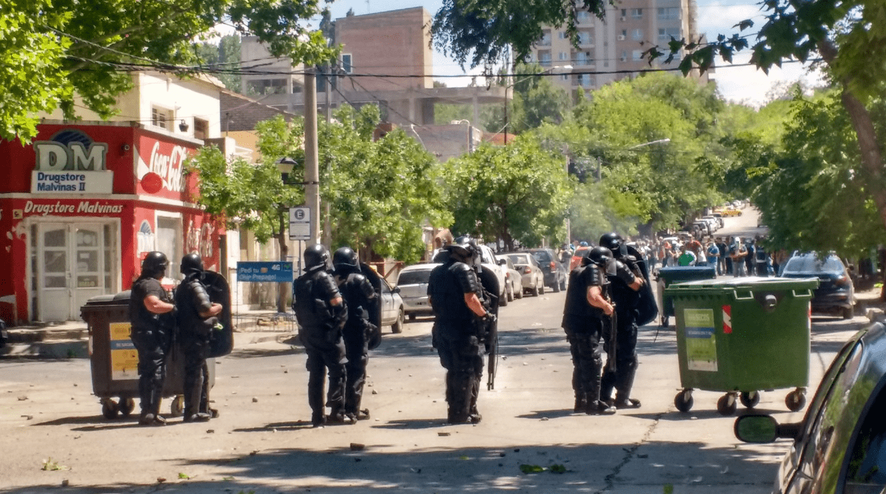 Momentos de tensión se vivieron en el cruce entre la Policía de Neuquén y los trabajadores de la Maderera MAM, durante