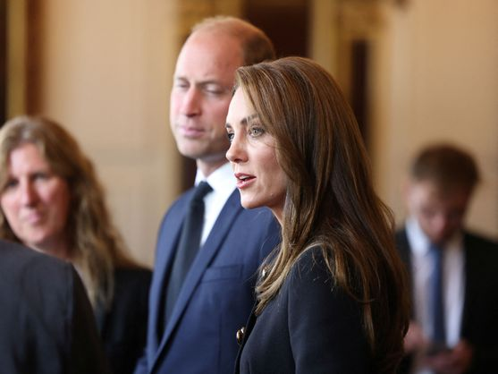 Pasarán unos segundos frente al féretro de la reina, cubierto por el estandarte real y la corona imperial, en Westminster