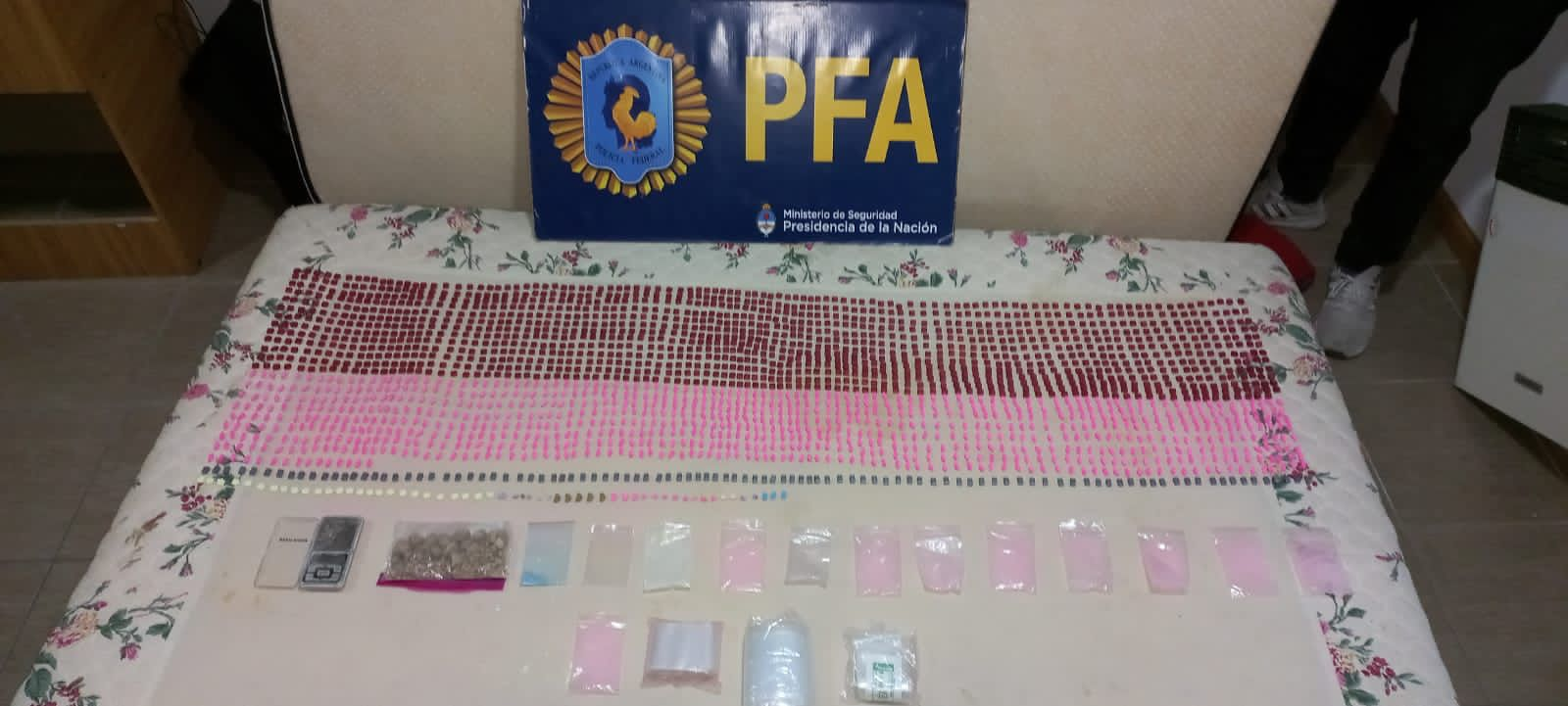 La policía encontró 5.500 dosis de distintas sustancias, armas, más de 800 mil pesos y 1.220 dólares en efectivo. Un