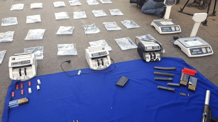 Entre las armas secuestradas en el asentamiento ubicado en el barrio de Flores, en Bonorino y Riestra, se encontraba una ametralladora, una granada, una pistola 9 milímetros y cartuchos FAL. También se incautaron balanzas de precisión y otros elementos para procesar.