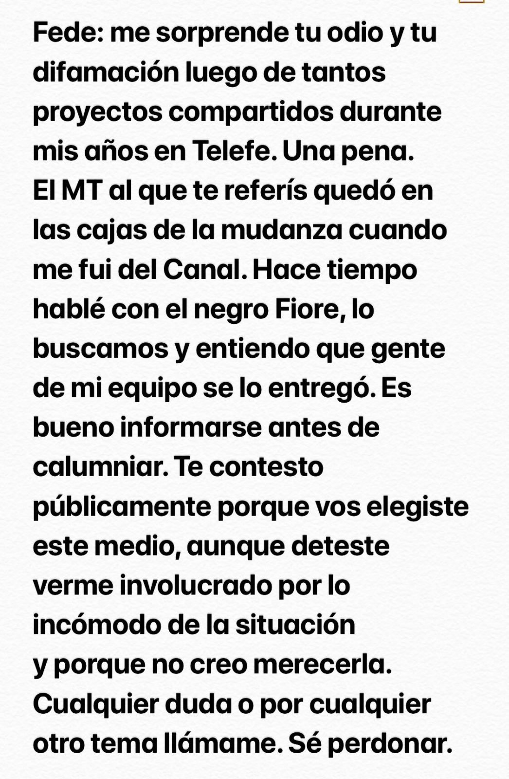 Horas después el actor informó que el Martín Fierro ya había sido devuelto.