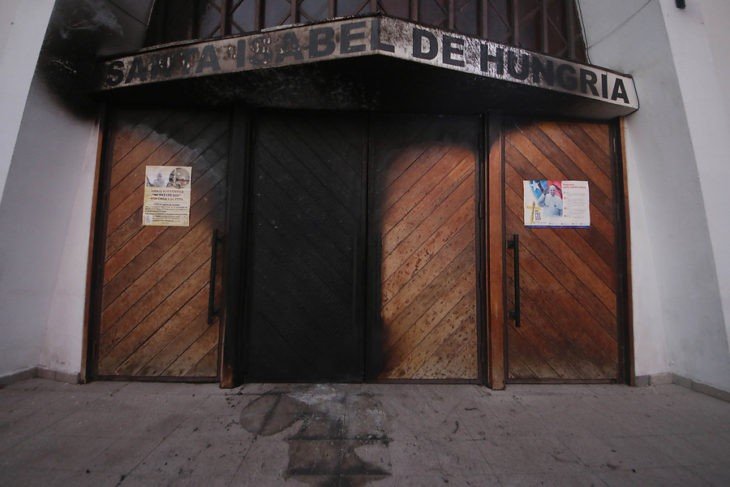 Encapuchados tiraron una bomba incendiaria que dañó la puerta principal y parte del hall de entrada de una parroquia en Melipilla, Chile, ciudad ubicada a 1 hora de Santiago.