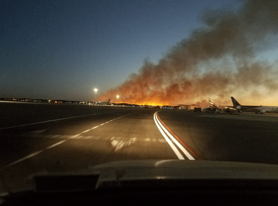 El terreno del que proviene el fuego pertenece al servicio penitenciario y aún no ha trascendido si el incendio, que está controlado, fue provocado de manera intencional o se trató de un accidente. Distintas imágenes pudieron registrarse desde el aeropuerto y alrededores.